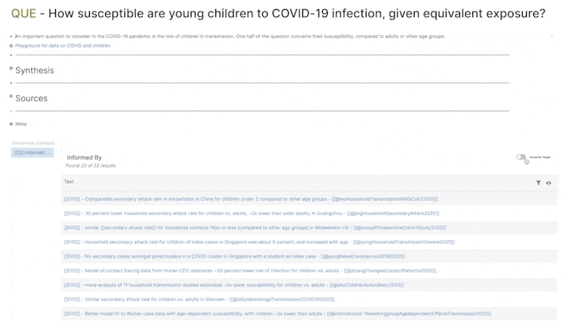 The discourse context component adds a “higher-signal” linked references section to each discourse node, that allows you to explore discourse relations (e.g., inform, support, etc.) between this node and other nodes in your discourse graph.